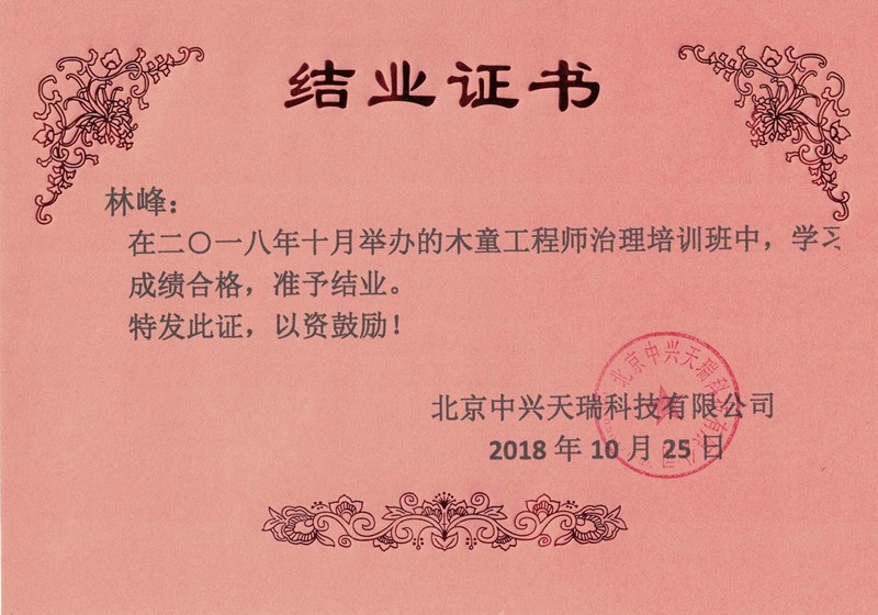 林峰-木童工程師檢測與治理服務(wù)高級培訓證書